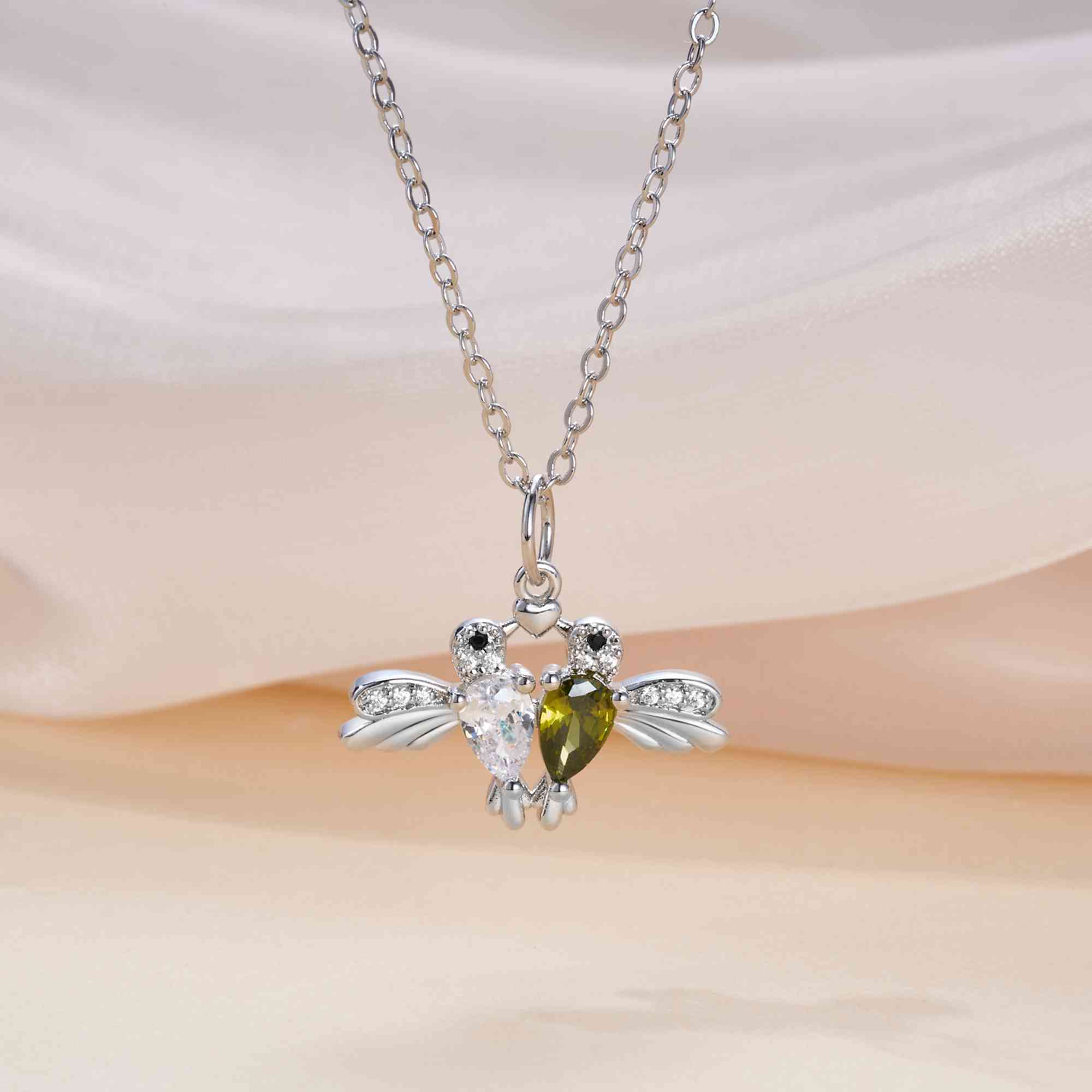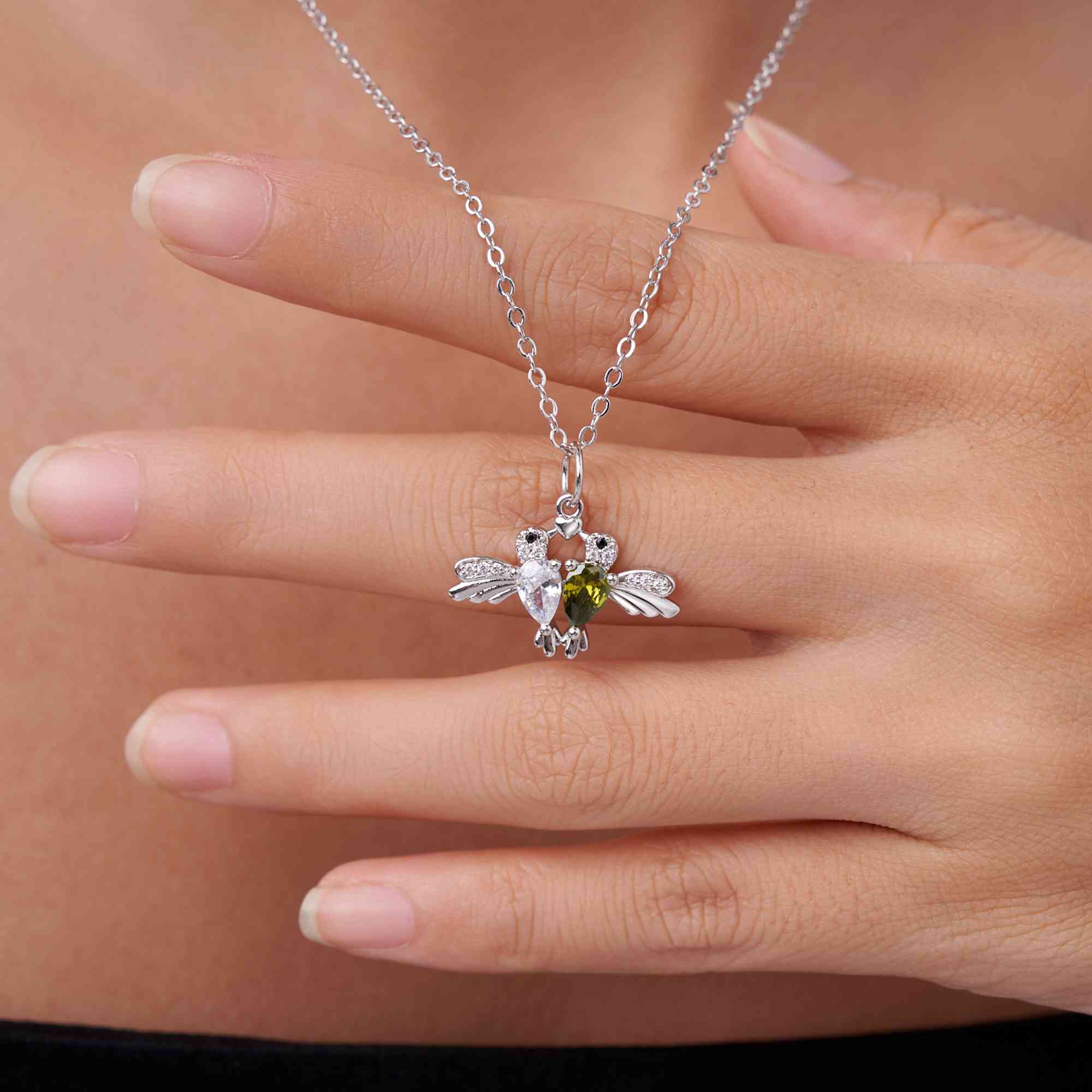 Style | Personalized Double Hummingbirds Necklace with Birthstones |